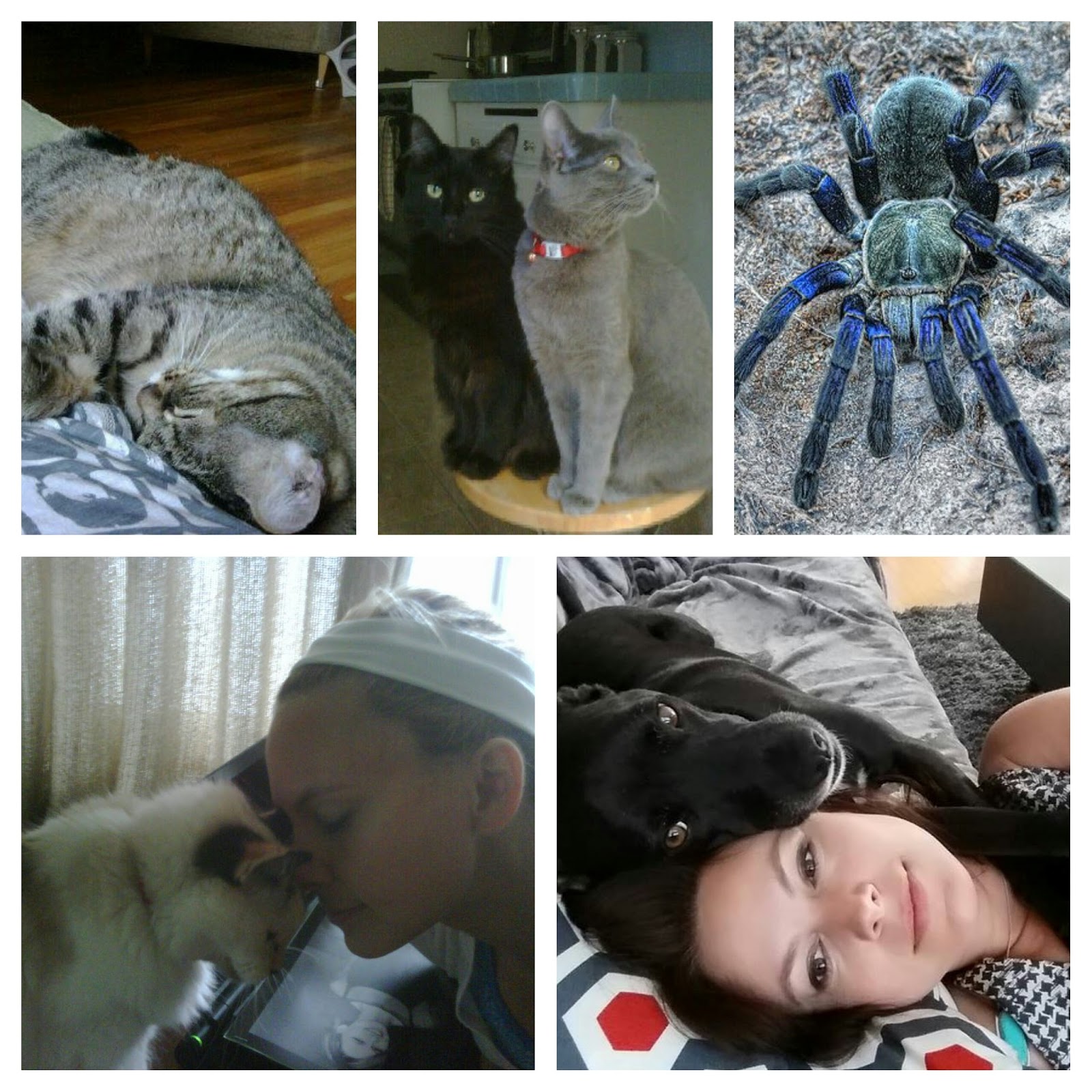 Past, Present, and Adopted animals.  Bottom Left, sweet 22 year old Yoko, may she rest in Peace.  Top Right—tarantula rescued from rushing river in Puerto Rico.  I’ve been told it’s not “native” and I don’t argue spider geographics, but I didn’t want to see her die. My sweet foster kittens and adult foster cat were placed into amazing homes.